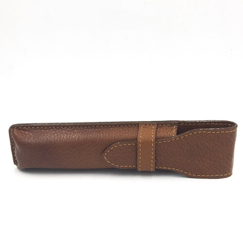 Recommended for all shavette and straight razors, this high quality hand stitched case is made of *genuine saddle brown leather to protect your razor. It will elegantly hold your razor while in storage or traveling. Why not protect your fingers when "razor fishing" in your toiletry bag or medicine cabinet?