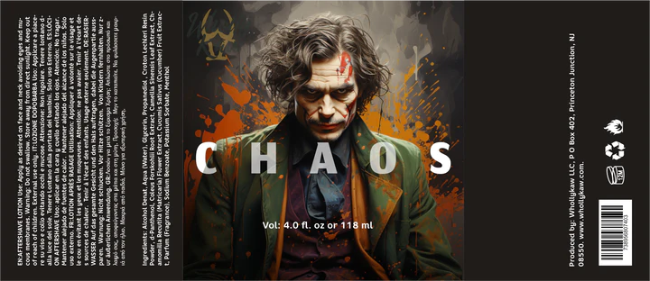 The same scent in the WhollyKaw Chaos shaving soap in an after shave splash with Dragon's Blood and pheromones from botanical sources. Botanical extracts are soothing to the skin. Splash is in our Feromone formulation.