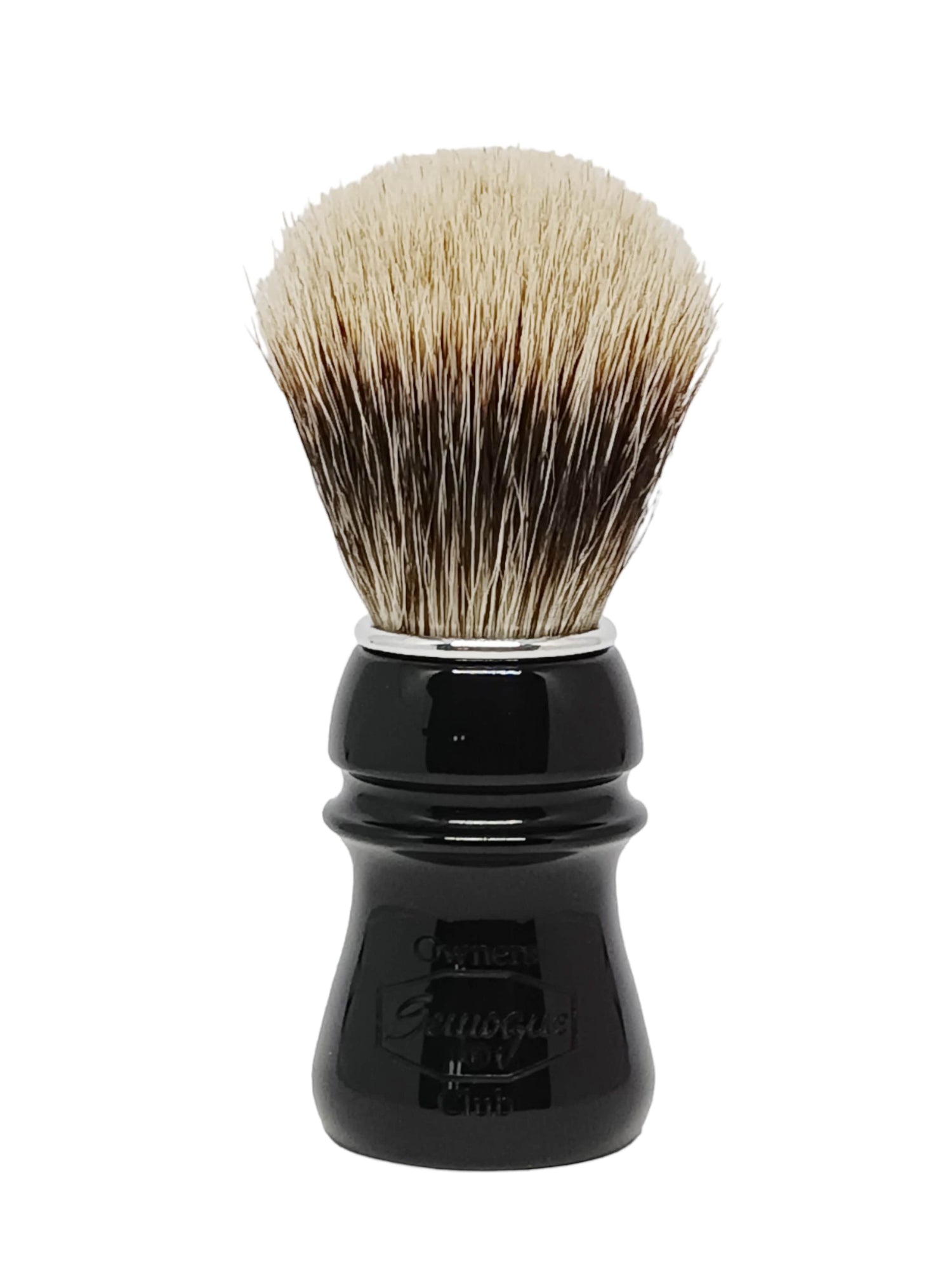Description: This Semogue Owners Club shaving brush version has a robust and ergonomic handle, sculpted in black resin, combined to a exclusive knot filled with Finest Badger