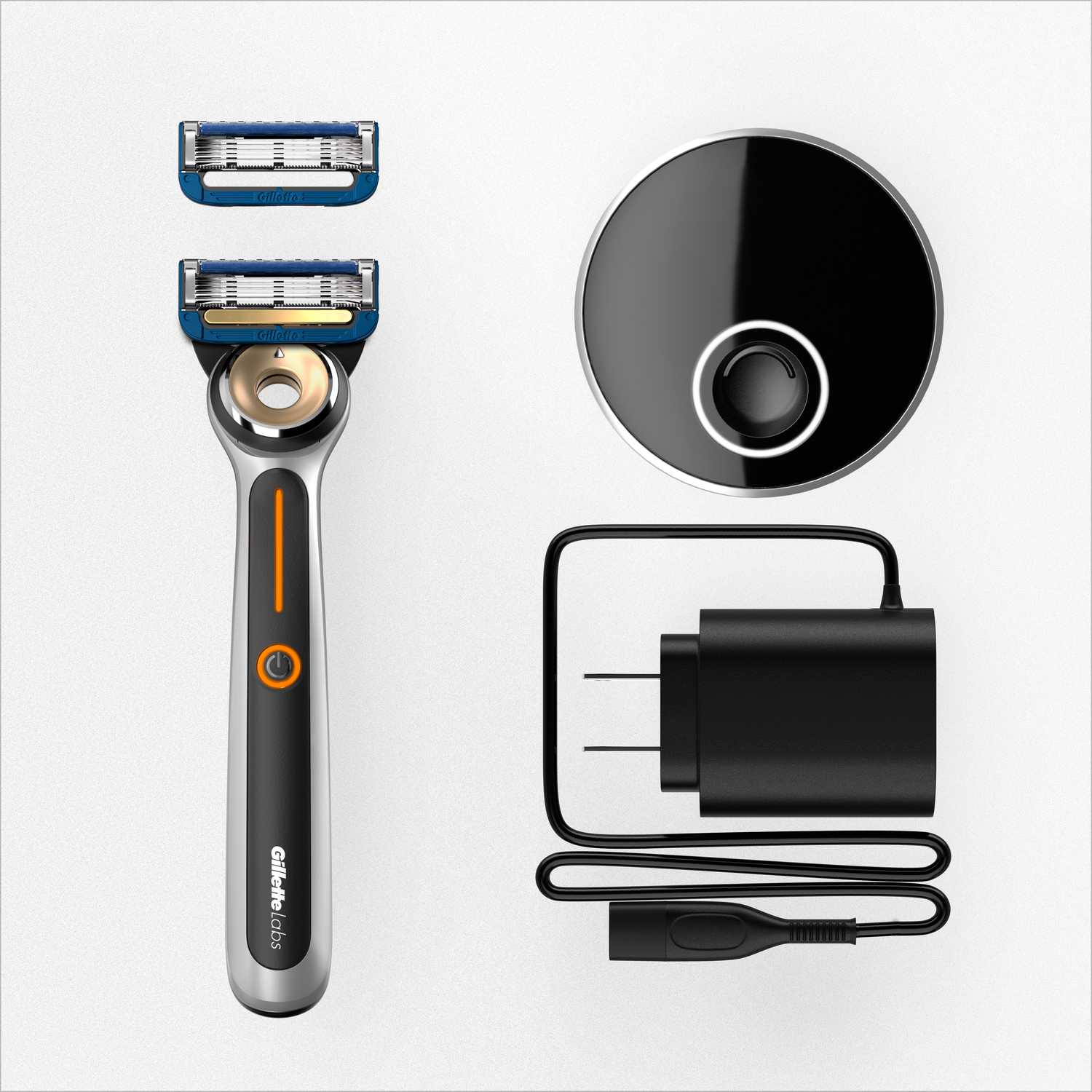 The Heated Razor Starter Kit comes with the Heated Razor, magnetic charging dock and plug, and 2 GilletteLabs blade cartridges. When you subscribe, get the starter kit on your first order and receive 4 blades ($25) at your chosen reorder frequency.