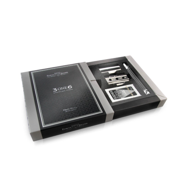 The sensational performance and finish of the Edwin Jagger 3ONE6 Stainless Steel Gunmetal DE Safety Razor has been achieved using revolutionary product design and advanced precision manufacturing techniques.