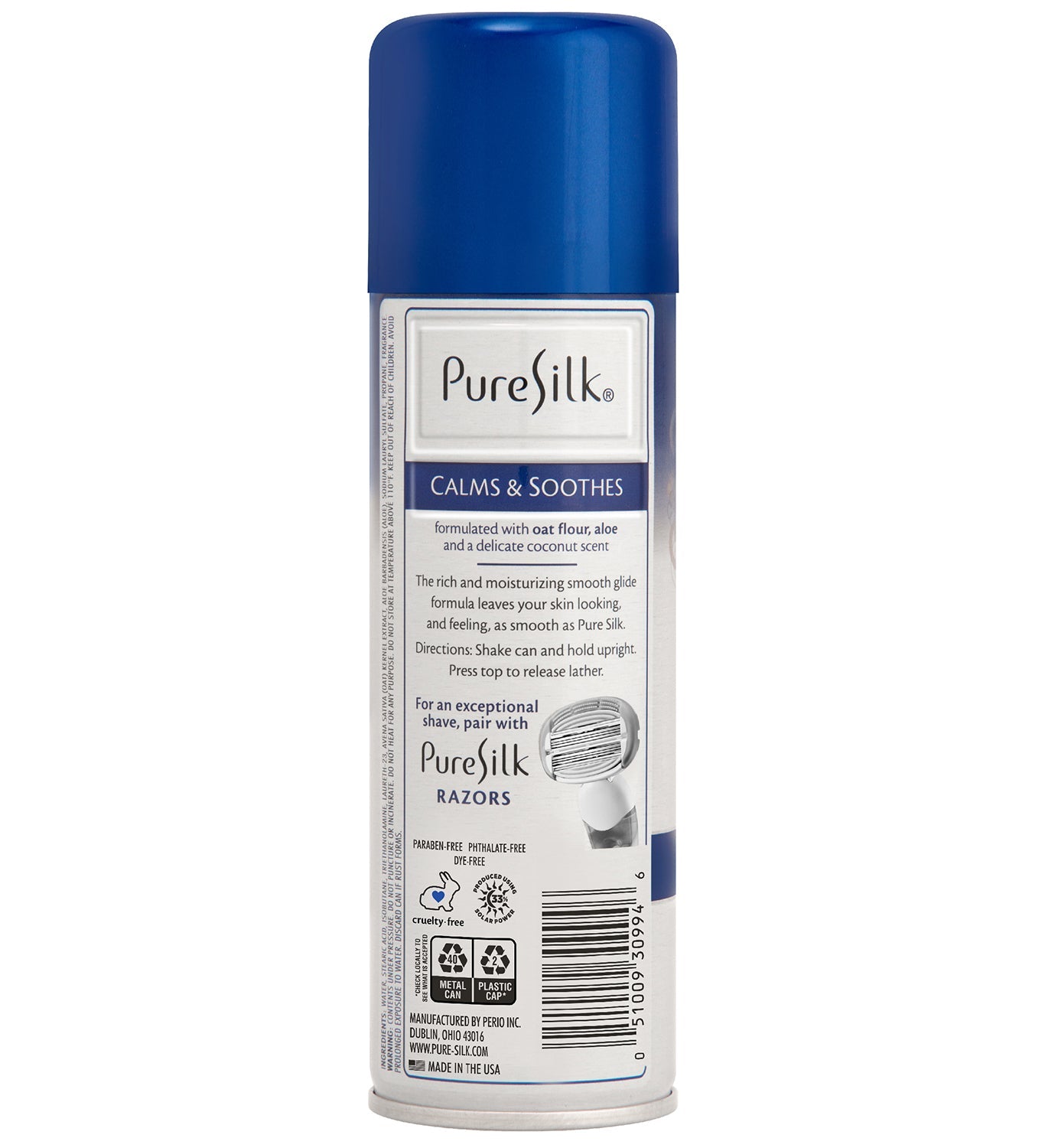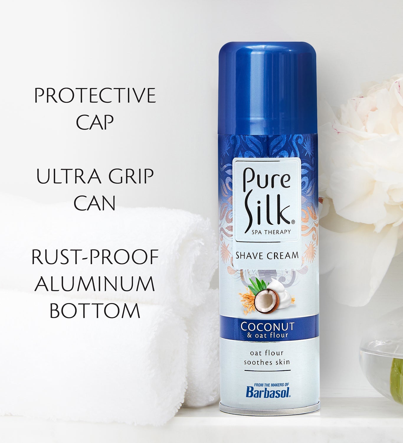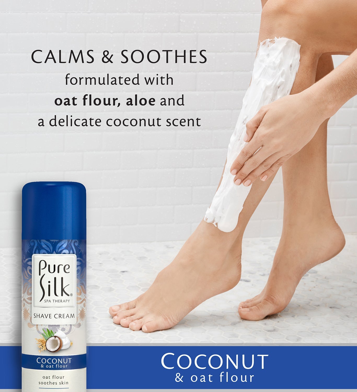 Formulated with oat flour, aloe and a delicate coconut scent to calm and soothe skin. Pure Silk Coconut & Oat Flour Shave Cream protects and nourishes skin with a moisturizing smooth glide formula that leaves your skin looking, and feeling, as smooth as Pure Silk.