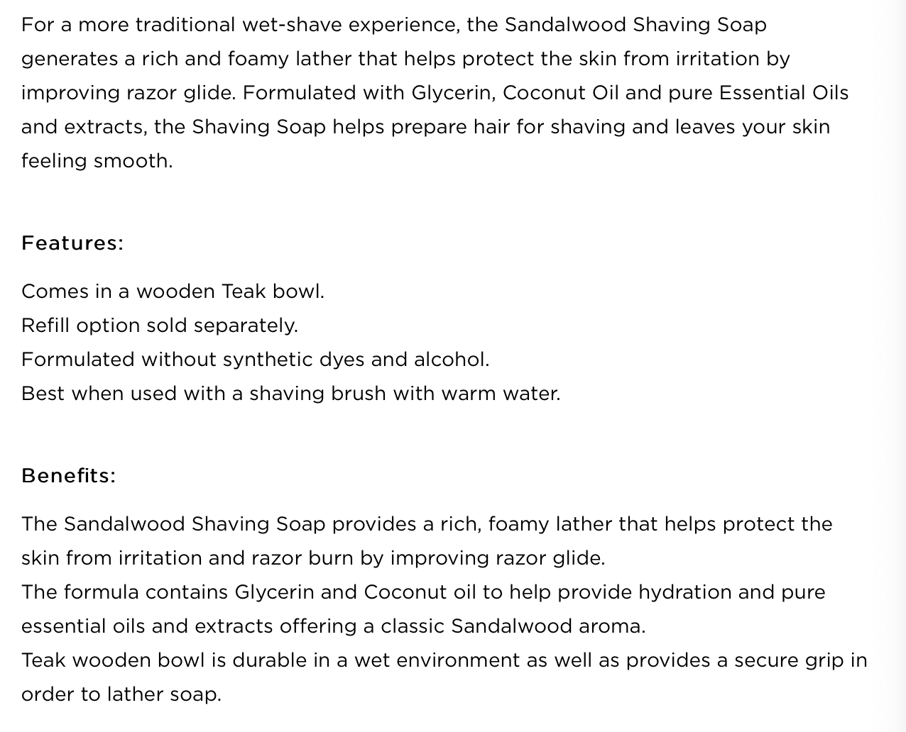 Our Sandalwood Shaving Soap is made with Sandalwood essential oil 100% sustainably sourced from Western Australia's Gibson Desert - a remote region whose harsh climate is known to produce the highest-quality Sandalwood. Sandalwood essential oil is known to help nourish dry skin, and has a warm, masculine aroma that promotes calmness and improves mood.