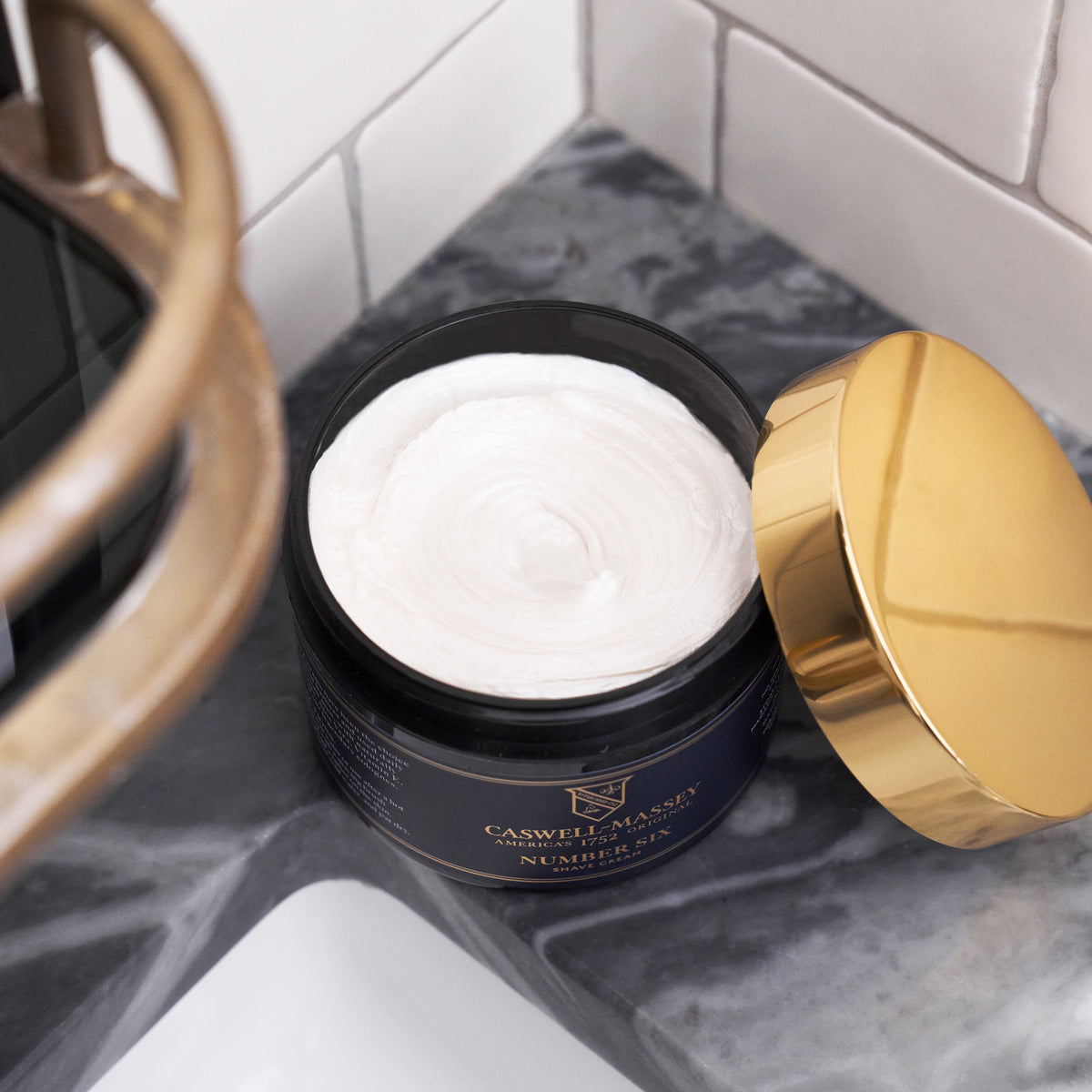 Number Six Shave Cream carries the refined aromatic citrus character of Caswell-Massey’s historic Number Six fragrance. Bright citrus, neroli, and bergamot open with elegance, complemented by herbal rosemary for a clean, sophisticated aroma that feels timeless and distinguished.