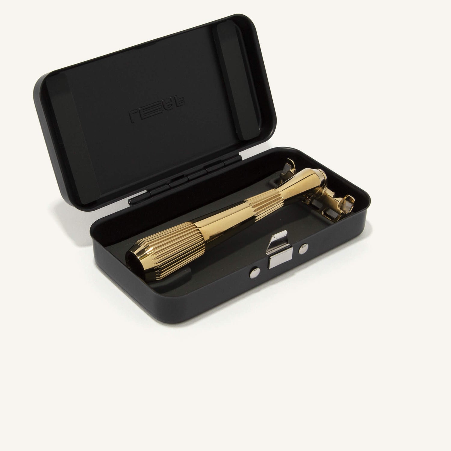 Protect The Twig razor while you move about with this custom hard-case. Constructed from aluminum, with a lunch-box hinge, push-button latch, and silicone inserts -- The Twig Travel Case will be a trusty companion as we all hit the road.