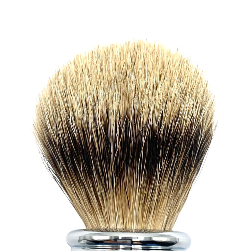 - Materials: Aluminum handle, silvertip badger hair, chrome-plated surface