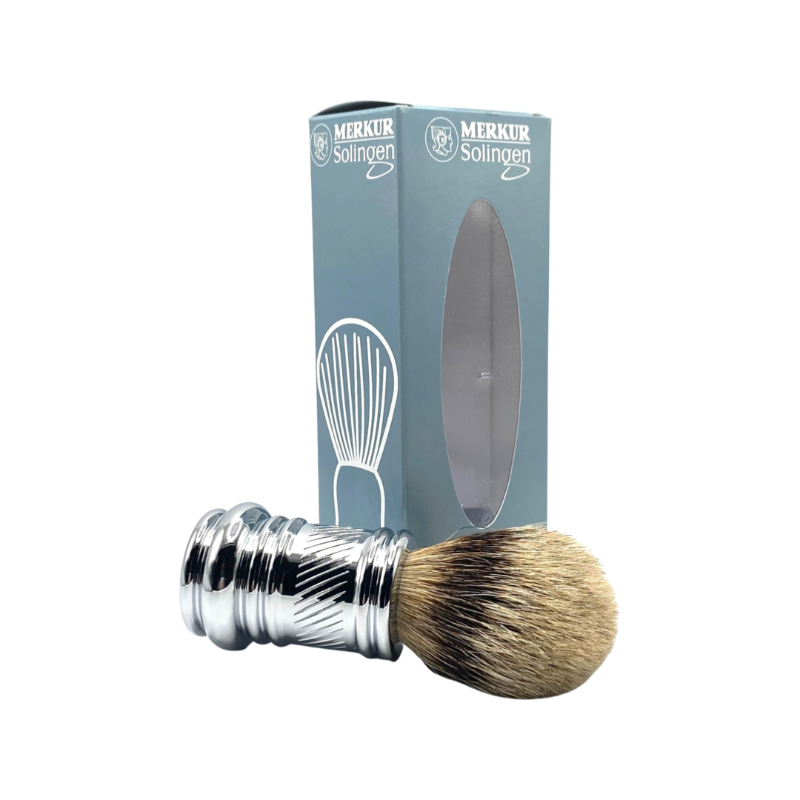 The Merkur Silvertip Badger Bright Chrome Shaving Brush offers an elegant and luxurious addition to your traditional wet shaving setup. Designed to complement Merkur’s popular 38C and 39C razors, this brush features a gleaming bright chrome handle and premium silvertip badger hair. The natural bristles create a rich, creamy lather while gently massaging your skin — enhancing your shave with both performance and indulgence.