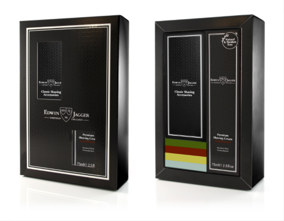 This is an excellent gift for a traditional wet shaver. The boxed set comprises an Edwin Jagger black DE86 razor, a 75ml tube of Edwin Jagger natural Sandalwood shaving cream.