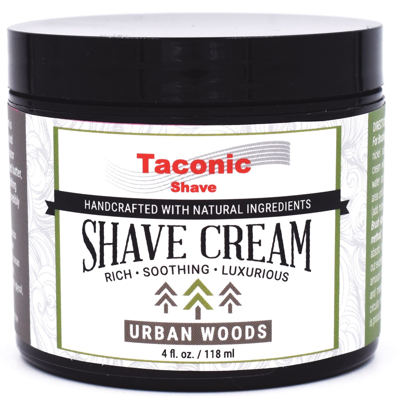 Taconic Shave's Urban Woods Shave Cream creates a lather that is rich, slick, luxurious and extremely long lasting. This product uses natural ingredients and is made in the USA by our artisan soap makers. Our cream can be used with a brush (recommended) or brushless. Either will deliver a fabulous shave. Highly concentrated, one container will last for several months.