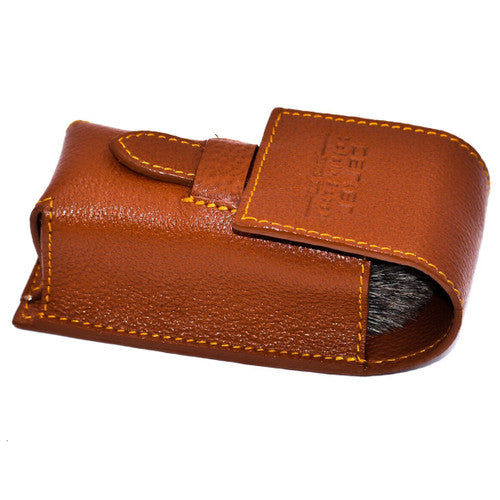 This Saddle Brown Genuine Leather Shave Brush Case from Parker Safety Razor is handmade to ensure high quality. This case will cover both the handle and bristles to help preserve your investment while traveling and is compatible with standard size shave brushes.