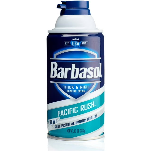 Ingredients: Barbasol Pacific Rush Shaving Cream is specially formulated with caffeine and a lively kick of invigorating menthol to help you feel the rush. The premium Close Shave® formula, with quality ingredients, produces a rich, thick lather and exceptional razor glide. Barbasol Shaving Cream gives you the confidence that comes from a close, comfortable shave.