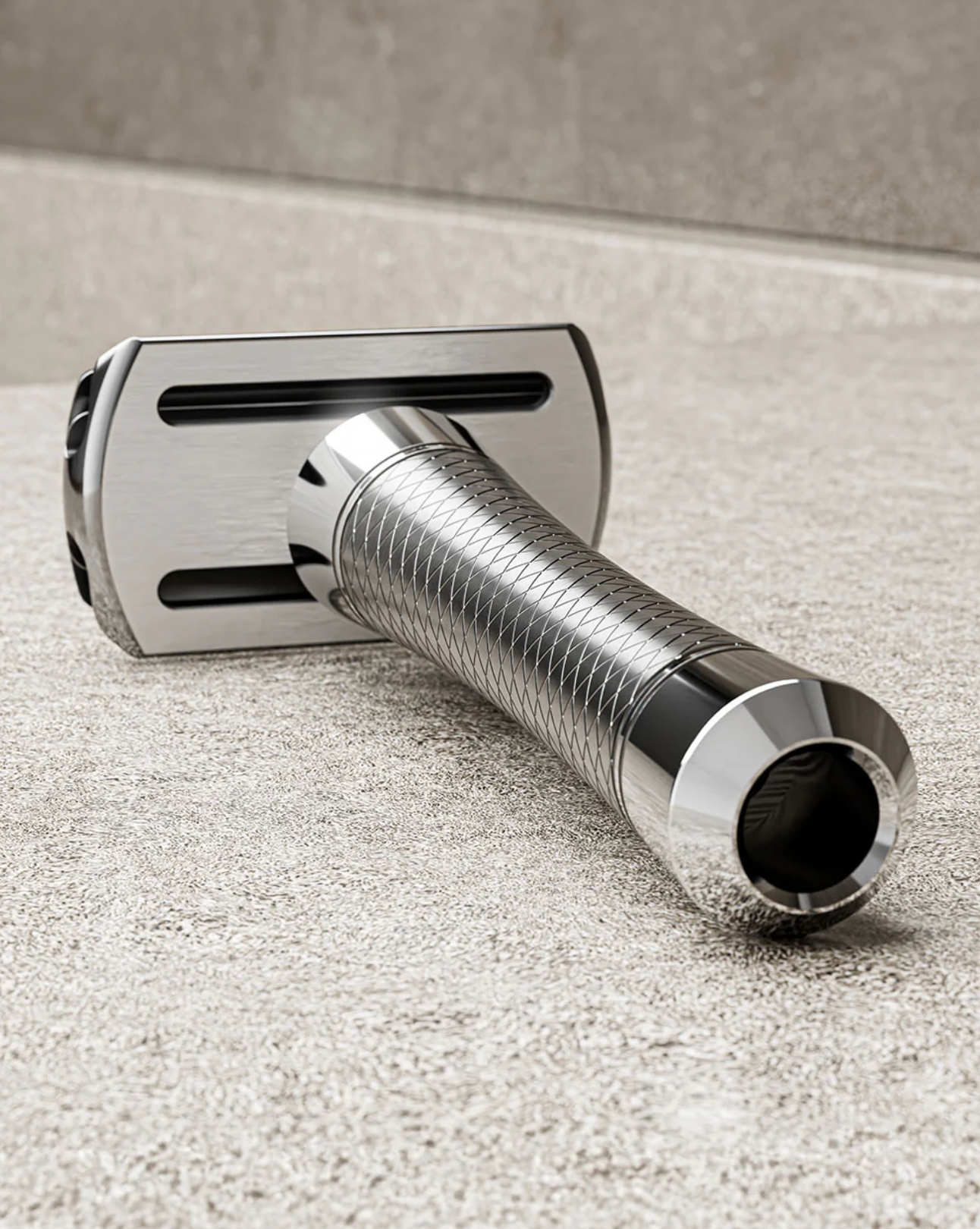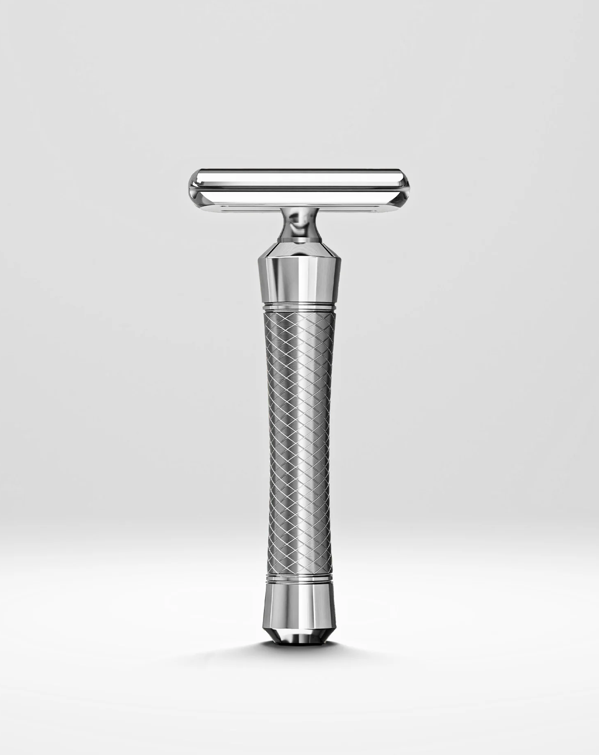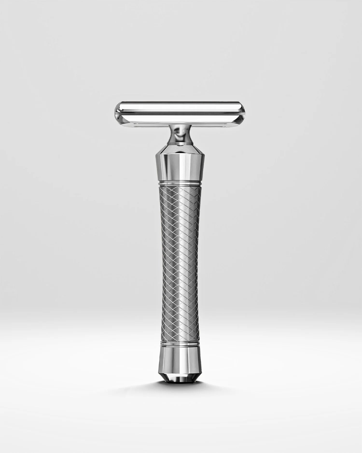 The handle, with its spiral diamond knurling, offers an exceptional grip that is both secure and comfortable, ensuring complete control even in wet conditions. Its tapered, cylindrical form and carefully calibrated hollow core provide the perfect balance in hand, making each stroke feel natural and precise. This thoughtful, ergonomic design allows for effortless maneuverability, letting you shave with confidence and precision.